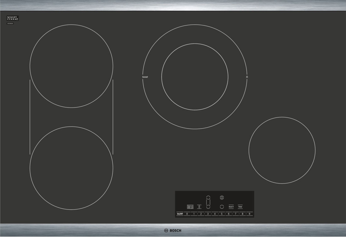 Bosch 800 Series 30" Stainless Steel Frame Black Electric Cooktop with 4 burners, PreciseSelect® and SpeedBoost®Read More