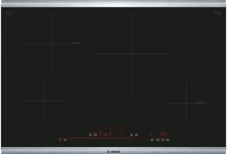 Step up to Bosch Induction. Choose a streamlined look and precise performance of a Bosch induction cooktop. 800 Series cooktops offers consistent element temperature settings for more precise cooking results using AutoChef®. Bosch cooktops can be installed in a frameless design to integrate more seamlessly with the countertop or a stainless steel framed design to stand proud. Speed up dinner for more moments to savor. Sometimes you don't want to wait for a pot of water to boil. The SpeedBoost™ function on Bosch induction cooktops adds even more power to speed up the cooking process. So you can boil water twice as fast as conventional electric cooktops.