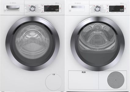 Bosch White Front Load Laundry Pair with a 2.2 cu. ft. capacity washer and a 4.0 cu. ft. capacity electric dryer.Read More