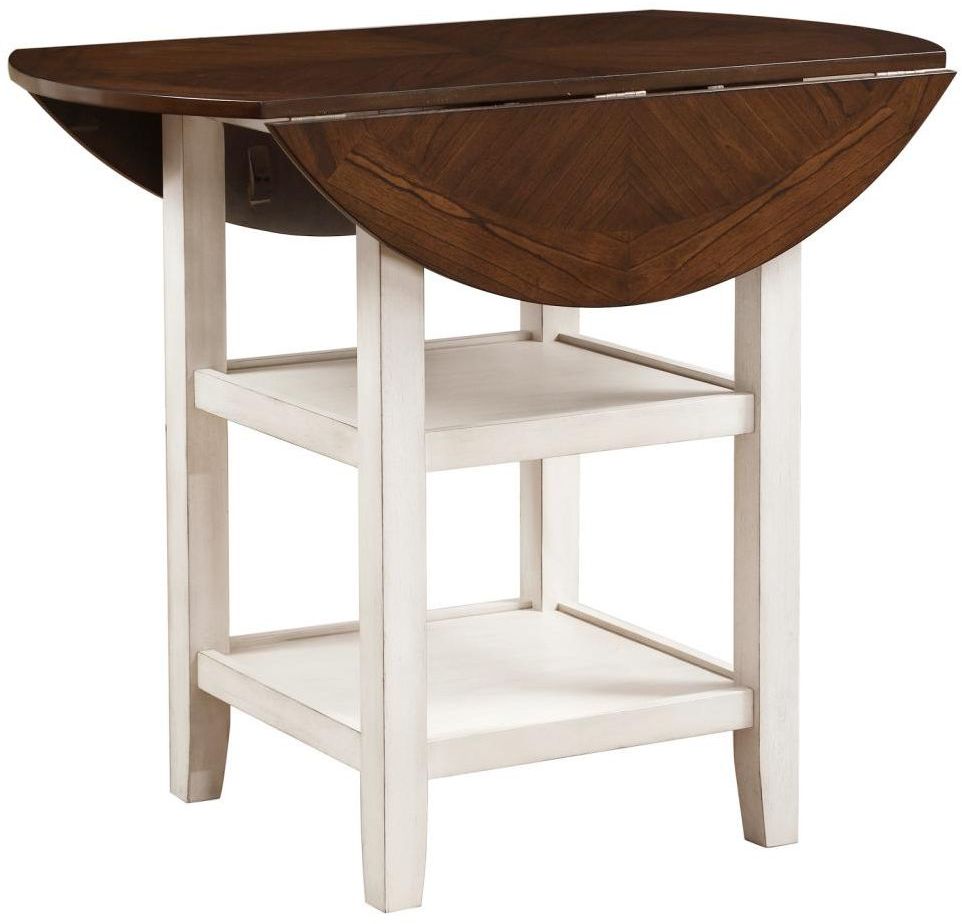 Perfectly scaled for your cozy dining space is the Kiwi Collection. The two-tone finish of the group – white wash and dark cherry – serves to highlight the mindy veneer. Drop leaf sides allow for placement or storage within your space that is quick and convenient for your lifestyle. The wood chairs feature dark brown bi-cast vinyl seats that contrast the white wash finish of the chairs. An open shelf base allows for the display of your tabletop accessories.Read More