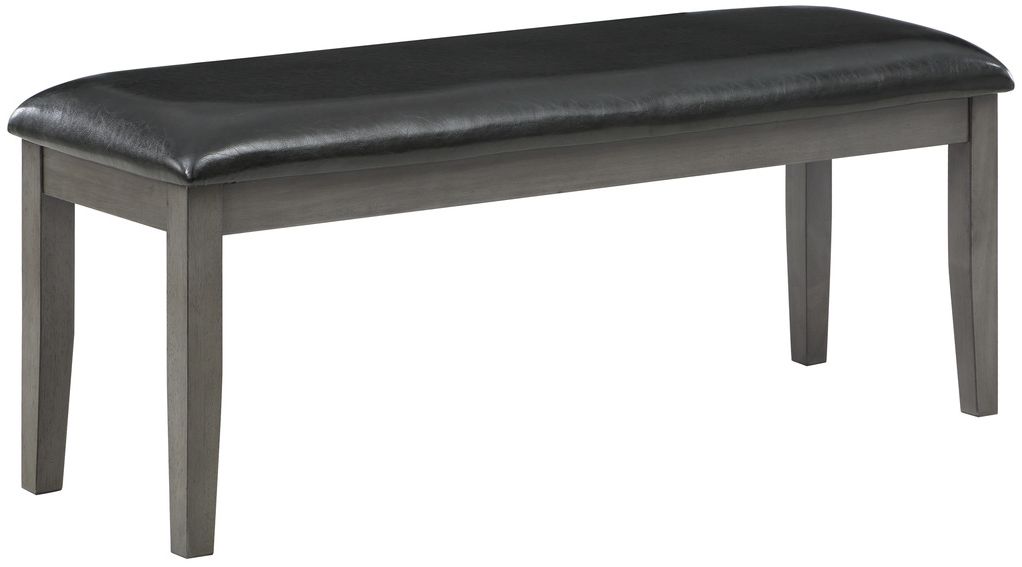 The Nashua’s transitional styling utilizes classic design elements to create a look that serves as the catalyst of the decorative versatility of your casual dining room. A gray finish over mango veneer highlights the wood’s grain. The wood-framed bench features a black faux leather padded seat.Read More
