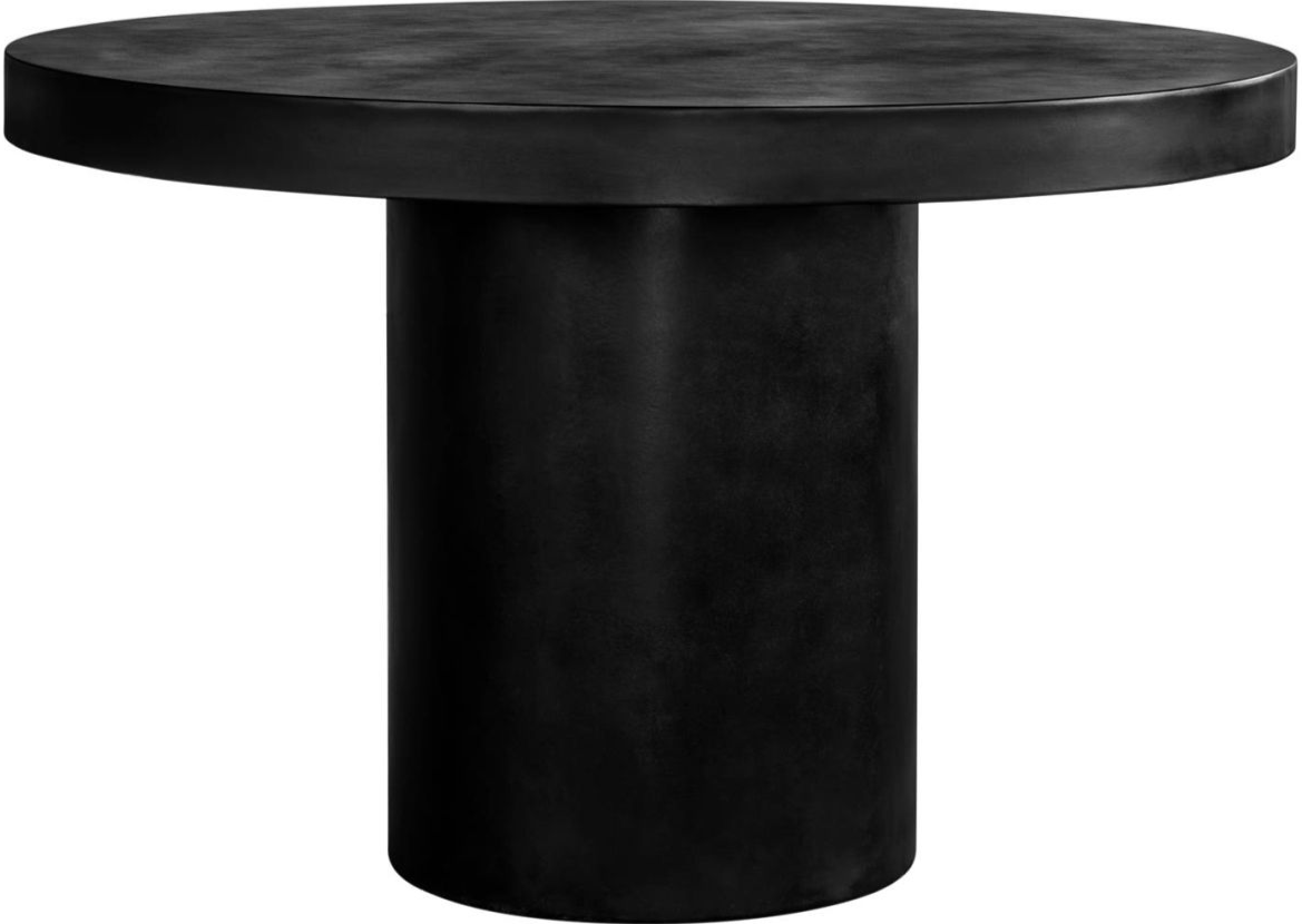 Here to give your outdoor dining area a sleek, modern look with a hefty pillared base and a thick, matte, circular tabletop. Ideal for any garden or patio setting, this dining table works indoors as well as a stately, contemporary design.