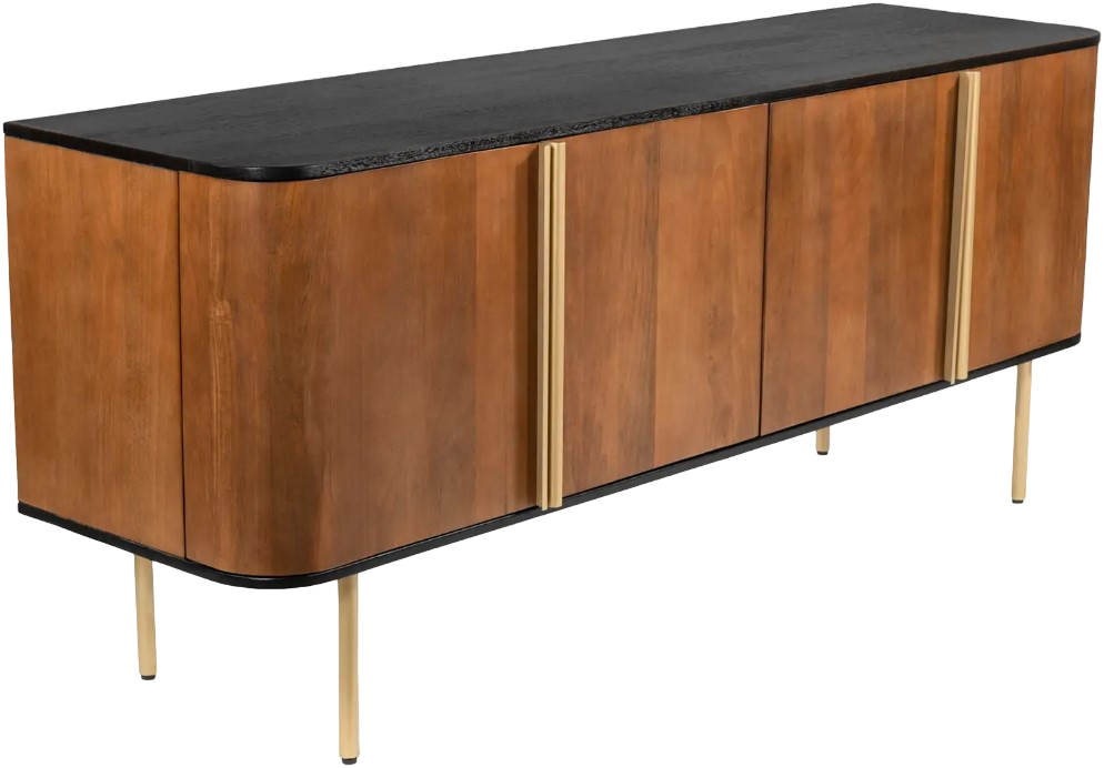 Made from mid-tone brown mango wood, the Dionne 4-door sideboard strikes a balance between natural beauty and contemporary design. Antique brass accents highlight the wood's natural grain, infusing the piece with a modern flair.Read More