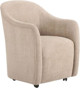 An updated take on the classic barrel chair, the Drava rolling dining chair is all about comfort-driven design with a continuous curve from arms to back and a squared padded seat wrapped in soft, textured upholstery for ultimate comfort with added versatility--its rolling base can be replaced with included plastic legs to create stationary seating.Read More
