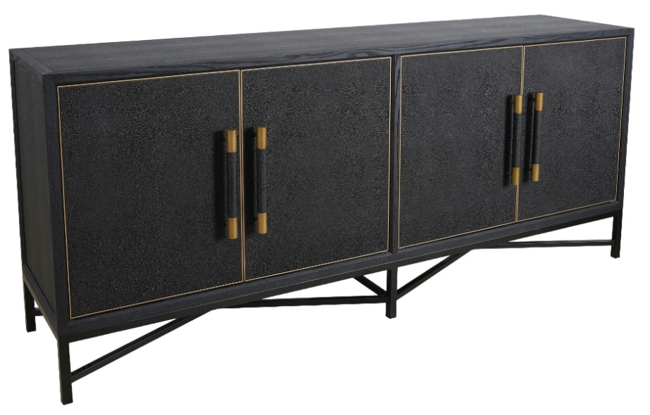 A contemporary homage to the timeless allure of Art Deco, the Mako sideboard infuses understated sophistication with rich visual texture and enduring style. This striking storage solution is artfully crafted with a bold black oak frame, upholstered with luxurious vegan leather and adorned with antique gold-finished accents.Read More