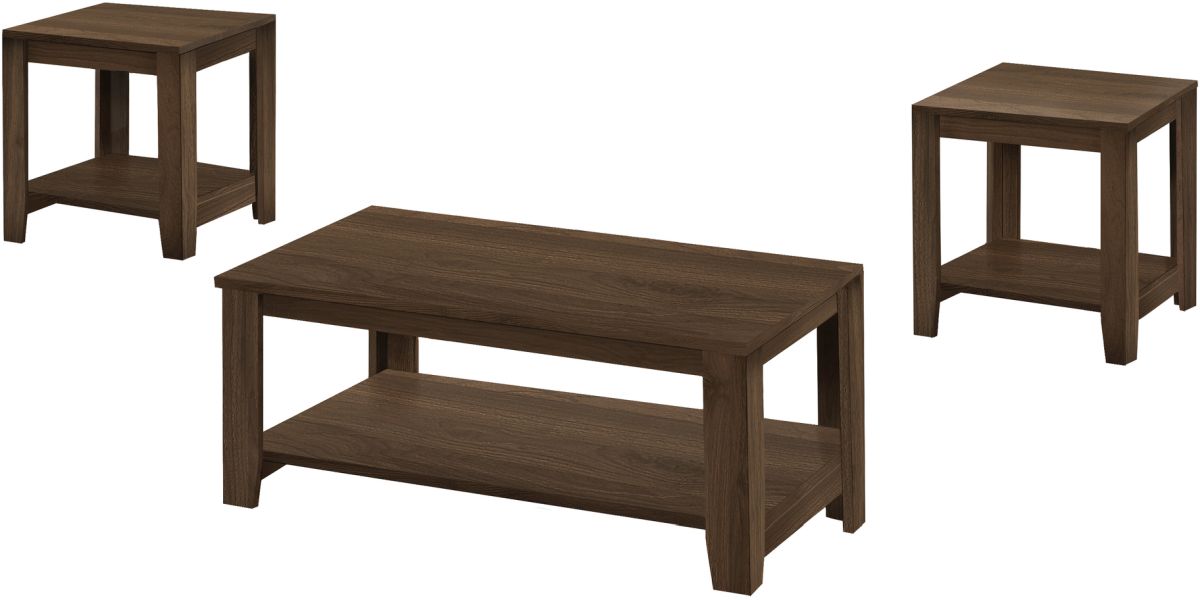 Whether you need the perfect living room table set to match your current decor style or if you're starting fresh, this is the perfect coffee table and end table trio for you. In a beautiful trendy wood-look finish, these living room tables offer top and bottom shelves for ample storage space so that you can sport any decorations or electronics. Made of a sturdy, thick panel construction in dark taupe, these tables can be placed just about anywhere in your living room, family room or basement. They are also perfect for small homes, condos or apartments.Read More