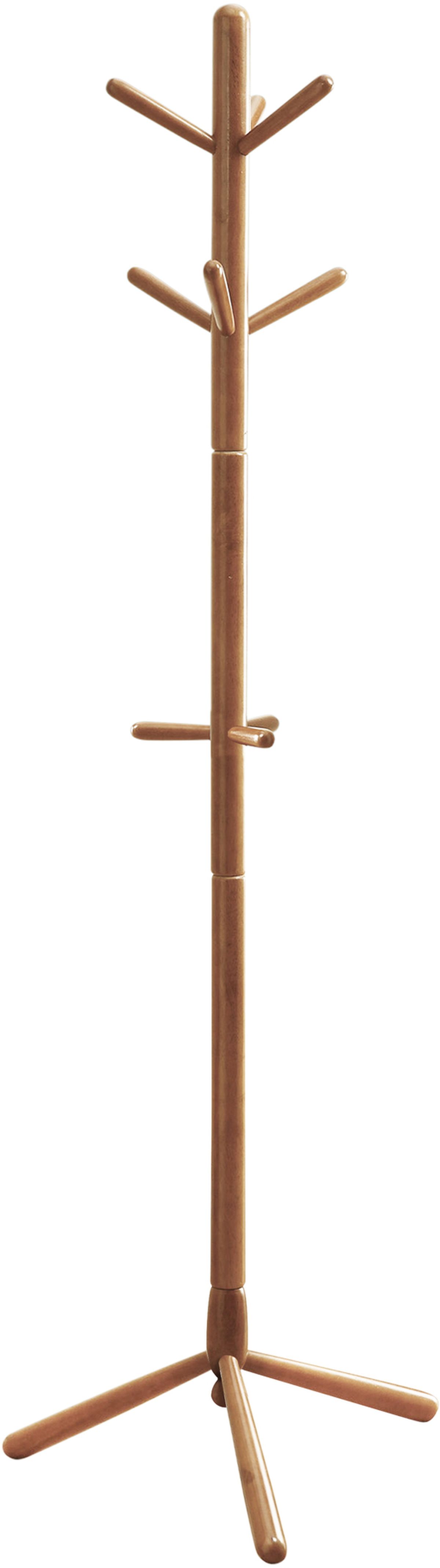 Organize your home with this contemporary solid wood coat rack. A beautiful warm oak finish and a sturdy pedestal base bring plenty of stylish storage into your living space. The simplicity of the design makes it easy to create functionality in your entryway, hallway or living room. This triple tiered coat rack with 9 hanging hooks is convenient storage solution for any room in your home.