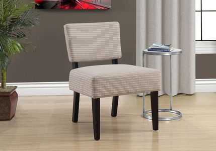 Combining contemporary lines and retro style, this versatile accent chair will bring sophistication to any room. It features sturdy, solid wood legs and exposed backrest supports in a black finish that provides an interesting visual contrast next to the soft fabric with an abstract dot pattern in light and dark taupe. With a deep, extra-wide seat and gently curved backrest that offer maximum comfort, this upholstered armless chair makes a great guest chair or slipper chair in a living room or bedroom.Read More