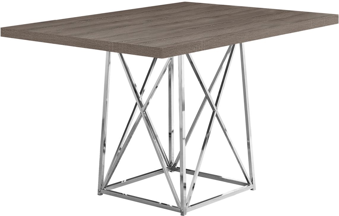 Stylish chrome metal legs have an x-shaped design, which adds a contemporary element to the wood dining table
