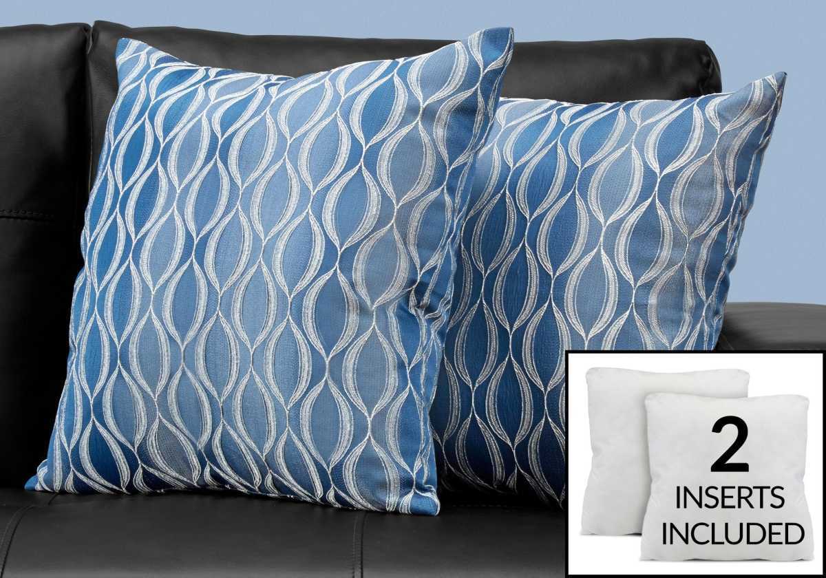 Transform your furniture with the addition of this set of 2 sophisticated square accent pillows. The blue colour in a classic wave pattern on both sides adds style to a chair, sofa, bed, or entryway bench.Read More