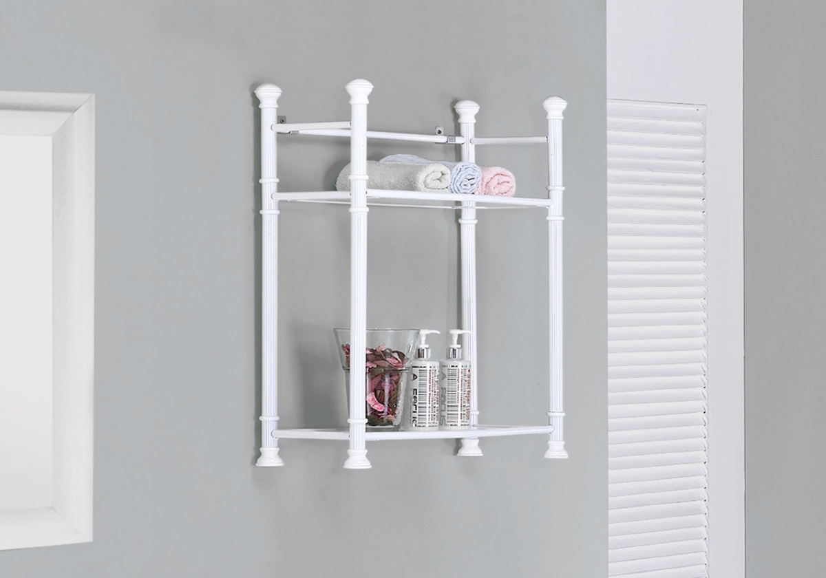 Freshen up your decor with an ultra-stylish bathroom storage solution; this white metal wall shelf is the one for you.