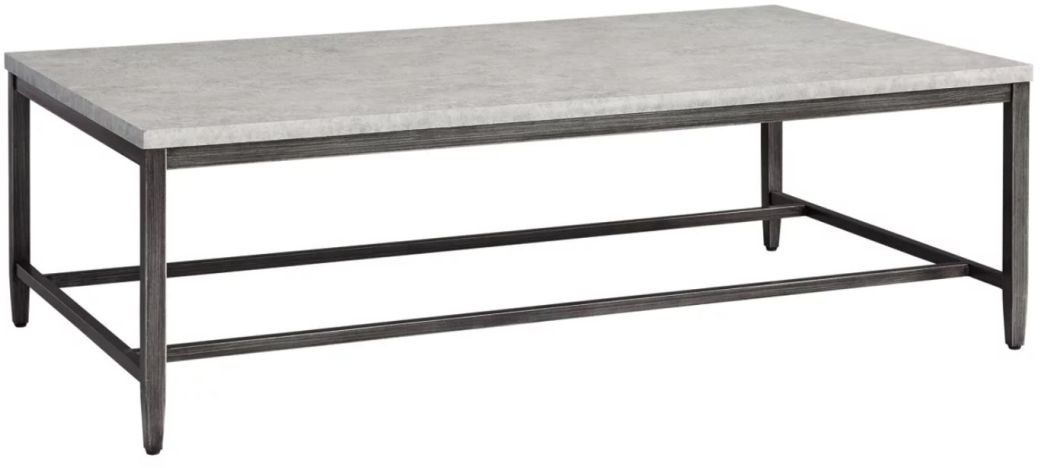 With its casual, linear style design, the spacious Shybourne coffee table works wonderfully well with larger sofas and sectionals. Features faux concrete melamine top with metal base in a dark pewter-tone finish.Read More